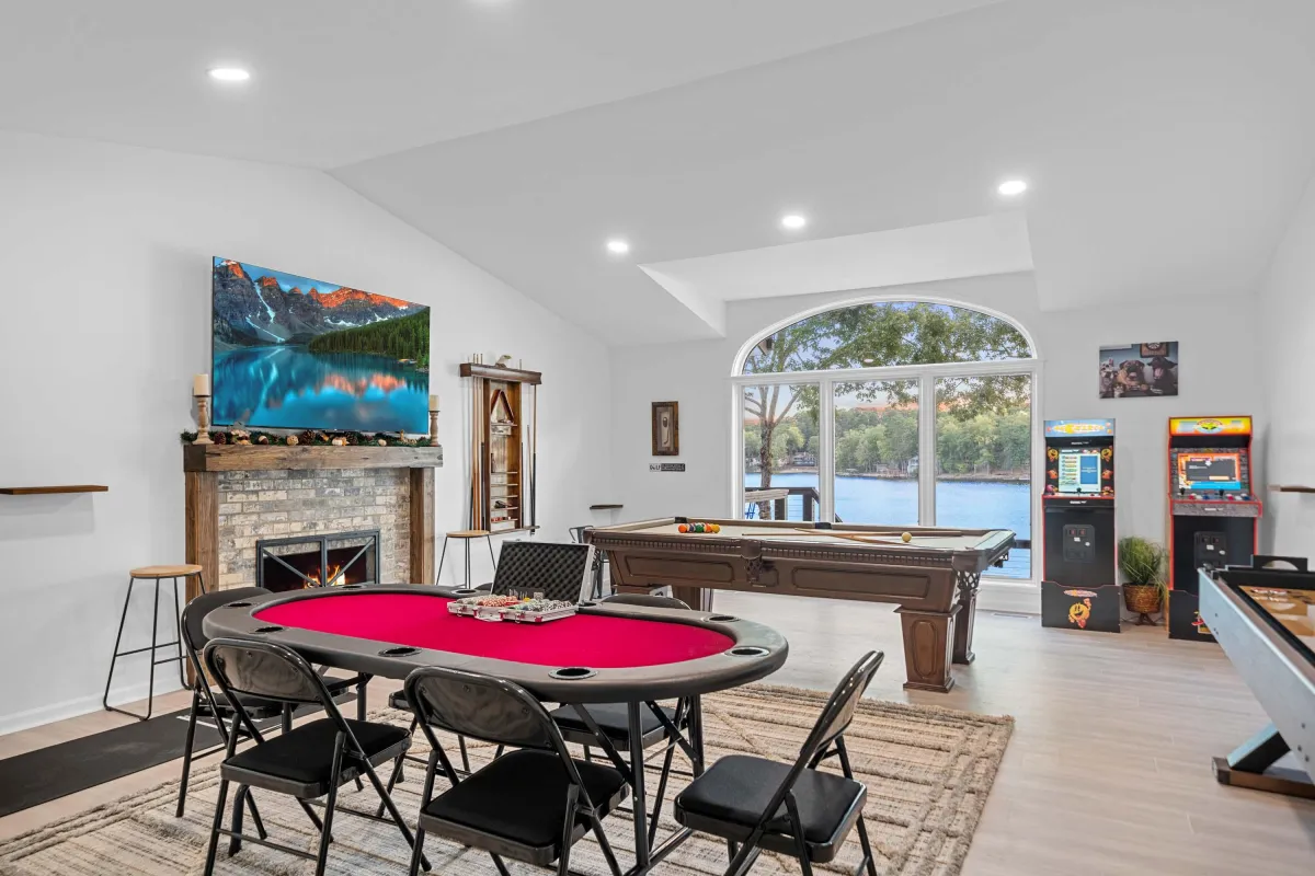 Best place till now! I can give 10 stars if you ask!! This place is a GEM! Whatever you can think of for a peaceful, cozy, long lakeside stay, this place has all covered. It's a brand new home!! Plenty of room for everyone, comfortable for all ages people! We were 13 and still 2 bedrooms were not used. Game room with at least 5 different games, board games are plus, paddle floats, fire pit by the lake, barbecue, jacuzzi, entertainment center.. What else you need to enjoy!!! Host is very helpful, responsive and has listed the property 100% accurate. Location is really beautiful with sunset views!!